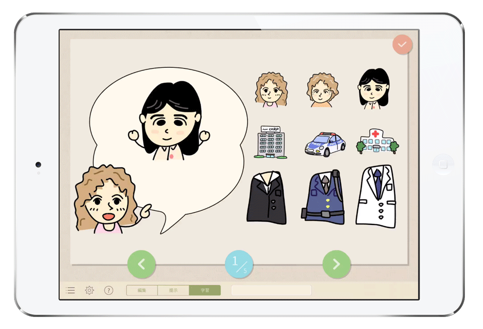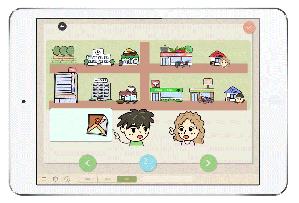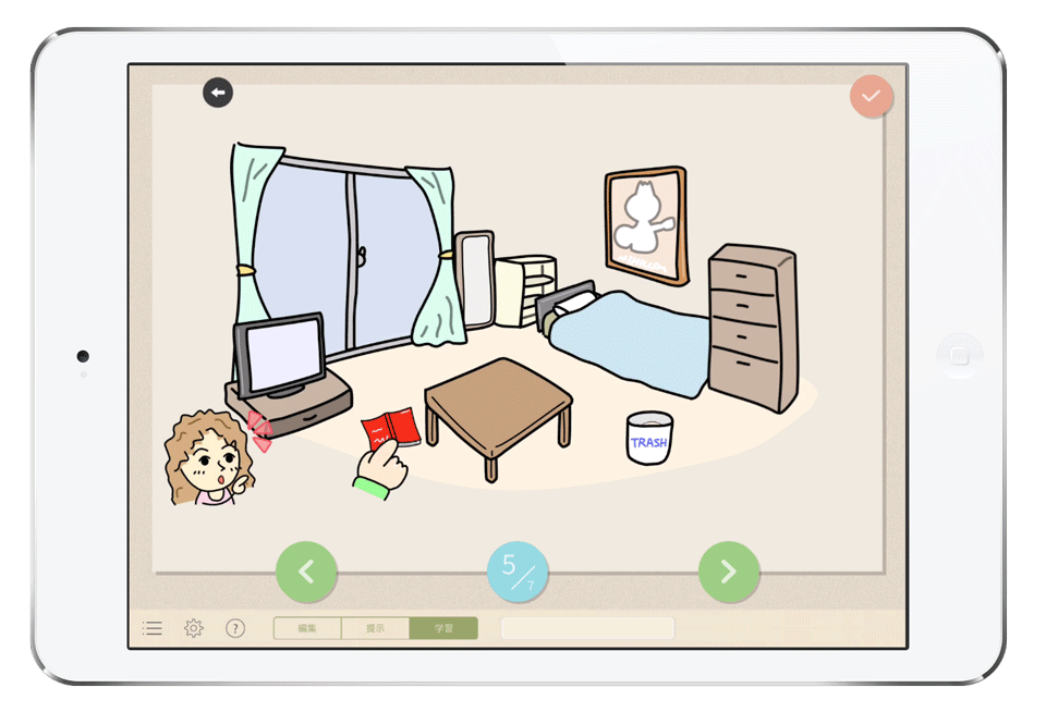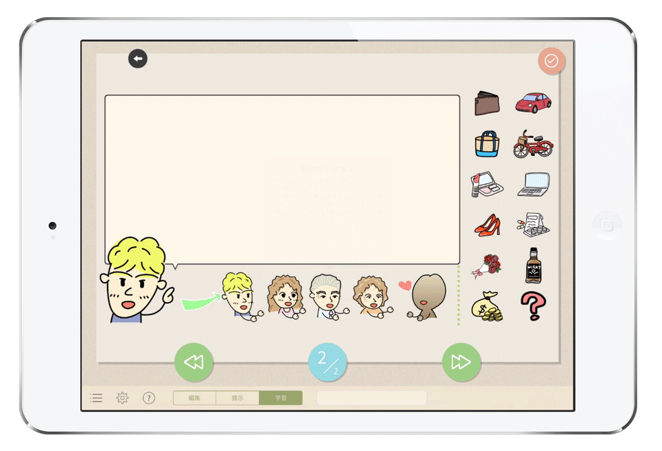動くイラストによる場面提示で、即座に場面を変更できてしまいます。先生のタッチひとつで場面が変わる、楽しく易しく効果的な授業風景をご覧ください。