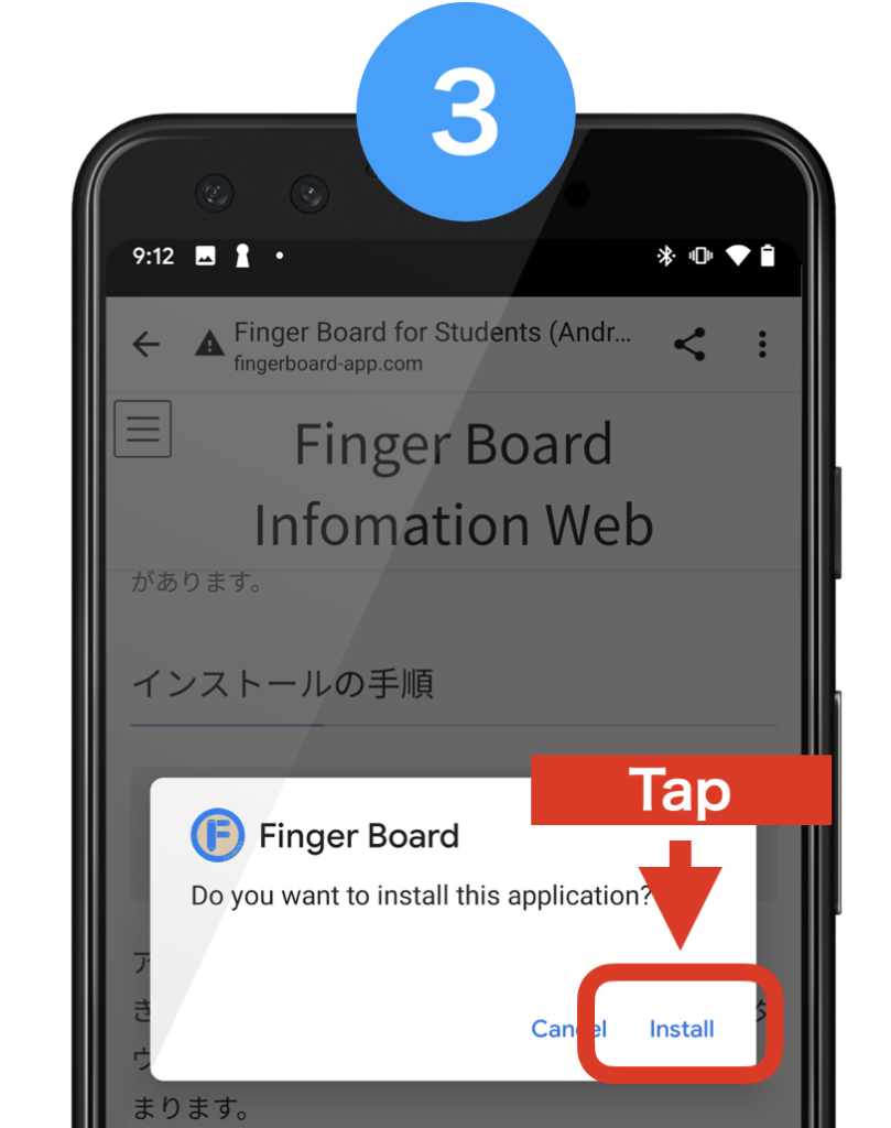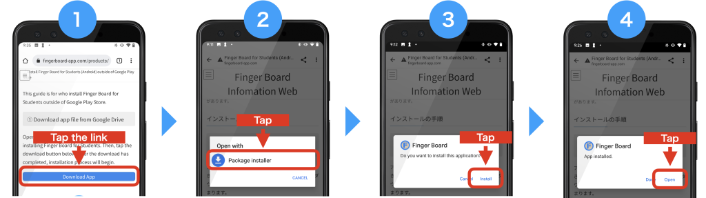Open this page with the device which you are installing Finger Board for Students. Then, tap the download button below. After the download has completed, installation process will begin.