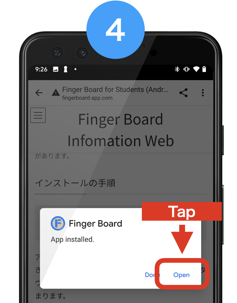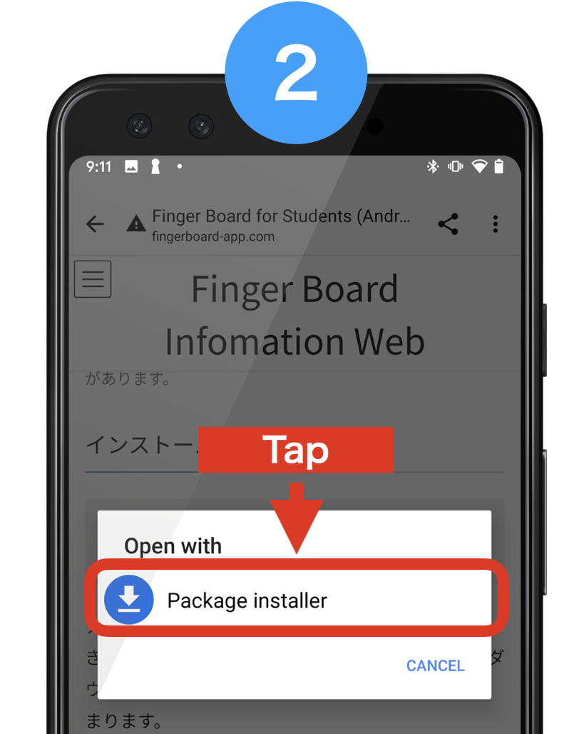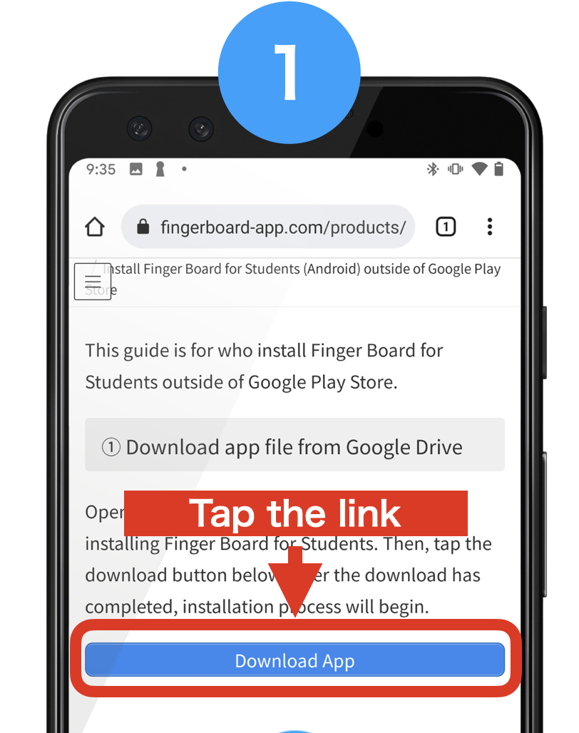 Open this page with the device which you are installing Finger Board for Students. Then, tap the download button below. After the download has completed, installation process will begin.